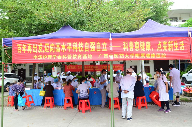 为响应中华护理学会及广西护理学会《关于开展2021年科普活动日活动》的通知要求,促进优质医疗资源下沉,深入基层引导文明健康生活方式,提高全民健康素养水平。9月16日上午,我院护理部组织骨伤科、肿瘤科、内分泌科、耳鼻喉头颈外科、老年病科、心血管内科、肾病科、妇科、产科等多个专科的护理专家16人,联合田阳院区医疗护理专家团队10余人到百色市田阳区那坡镇,开展主题为“百年再出发,迈向高水平科技自立自强——科普惠健康,点亮新生活”的科普义诊活动。