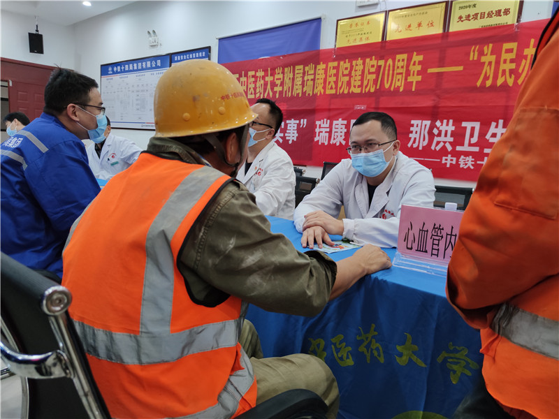 自党史学习教育开展以来,我院始终以“我为群众办实事”贯穿始终,以实际行动践行初心使命,为群众办实事、办好事、办身边事。今年,我院迎来了70周年华诞,10月22日上午,医疗服务部组织肛肠科、泌尿外科、骨科、心血管内科等科室医护专家到中铁十四局南崇铁路项目部开展庆祝建院70周年健康义诊服务活动。