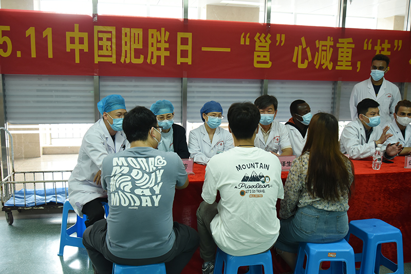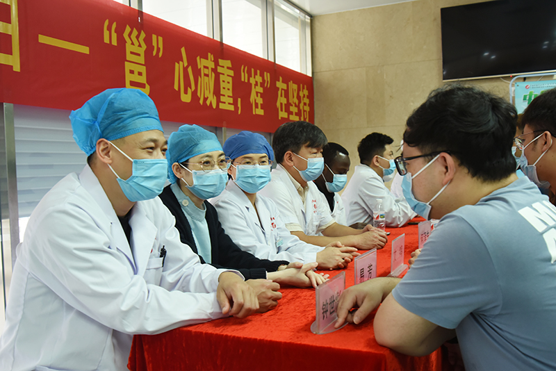 活动现场,胃肠外科主任韦建宝,副主任何泽生、钟世彪带领科室减重与代谢手术团队为“胖友”们提供免费测算体质指数(BMI)、三围、血压、血糖,免费发放肥胖及相关合并症防治的宣传资料,免费咨询并推荐个体化的健康饮食、合理运动及科学减重方案等服务。