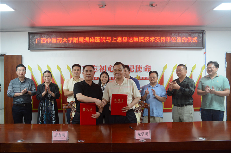 随后,双方签署了《广西中医药大学附属瑞康医院技术支持单位合作协议书》,并到各临床科室参观交流。