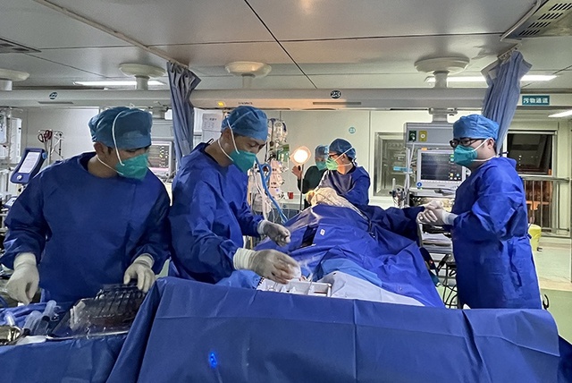 12月23日晚上七点左右,重症医学科二区病房一位73岁的患者病情突然加重,古立新主任立即率领ECMO团队进行紧急抢救,忙碌了一天刚下班的杨益宝医生、刘品晶医生接到通知立即折返加入抢救队伍,第二天将要值班一天的陆庆元医生也提前赶到了工作岗位。