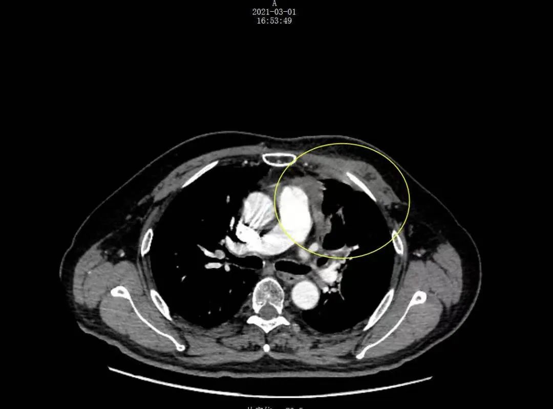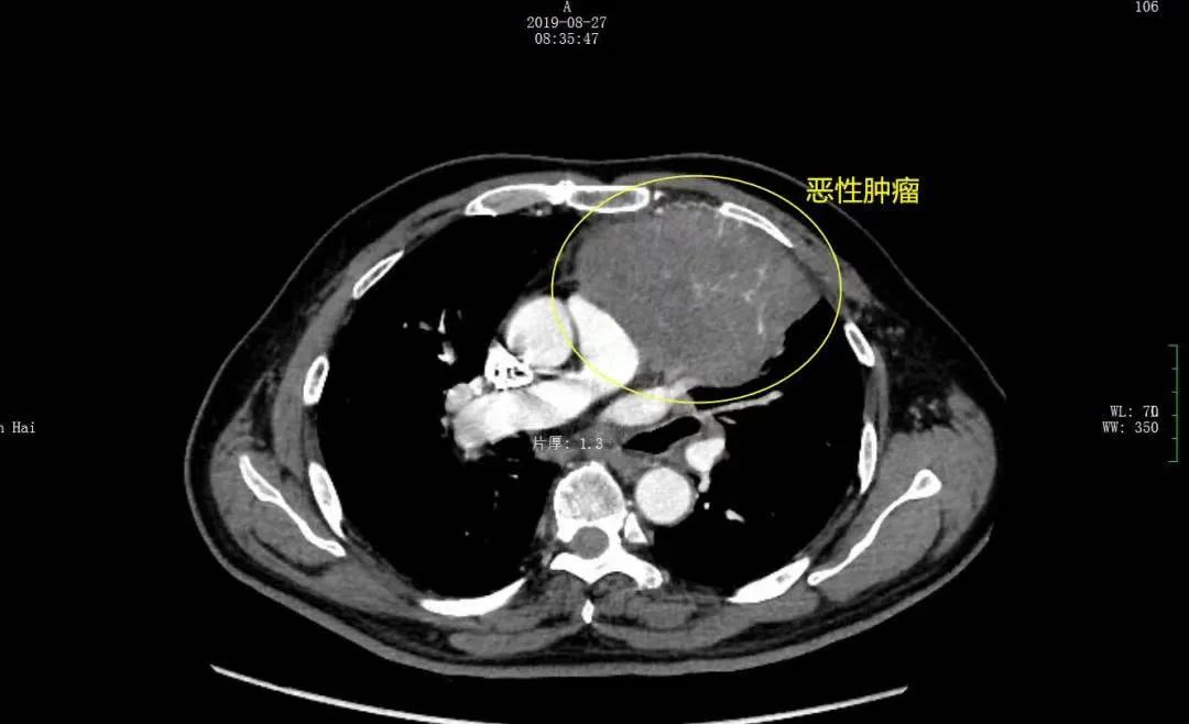 2019年5月,年逾六旬的王先生在没有明显诱因的情况下日渐消瘦,家人陪同他一起到当地医院检查,发现左肺上出现一个巨大的占位性病灶,并最终确诊为左胸腔鳞癌并左肺门、纵隔转移,与此同时,心包、胸膜、肺主动脉都受到侵犯。