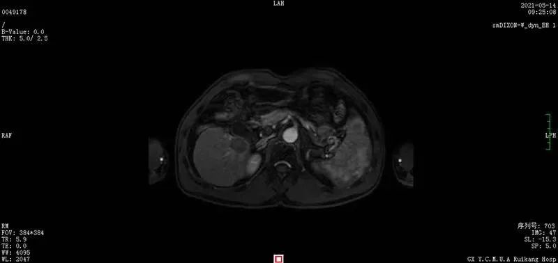 ▲江先生2021年3月24日复查MRI,最后确诊为肝细胞癌。