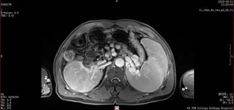 ▲江先生2023年3月11复查MRI:肝右叶肝癌综合治疗后改变,未见肿瘤复发或转移征象。