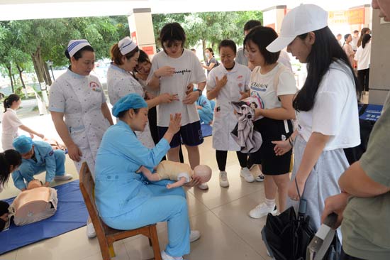 在活动现场,该医院治未病中心吕婵护士长作了题为《关爱眼睛健康,呵护心灵之窗》的健康科普知识讲座,分享眼睛保健知识。同时,医护人员向群众免费发放健康宣传资料、为现场群众把脉问诊、免费测量血压血糖;对群众提出的常见病多发病的健康问题进行答疑解惑,帮助大家掌握用药、饮食、复健等问题;不少现场群众还体验了多样化中医特色治疗,如:耳穴压豆、雷火灸、火龙罐、刮痧等;急诊科专家在现场培训应急必备常识、心肺复苏及海姆立克急救法等,不少群众在医务人员的细心指导下,亲身体验了心肺复苏操作全过程。