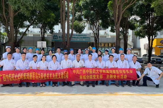 为庆祝中国共产党成立100周年,进一步加强基层党建工作,扎实开展“我为群众办实事”实践活动,5月18日,广西中医药大学附属瑞康医院内科党总支联合南城分院支部组织专家在南宁市西乡塘区南棉社区开展区域化党建惠社区大型义诊活动。