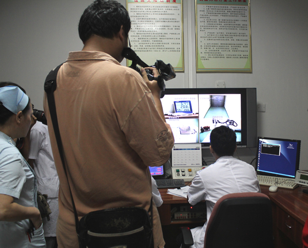 记者在操作间密切关注小武的动态