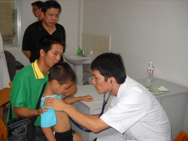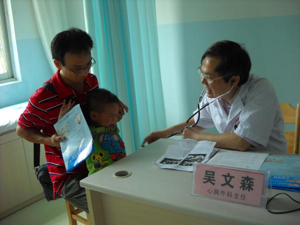 心胸外科吴文森在为患儿做检查
