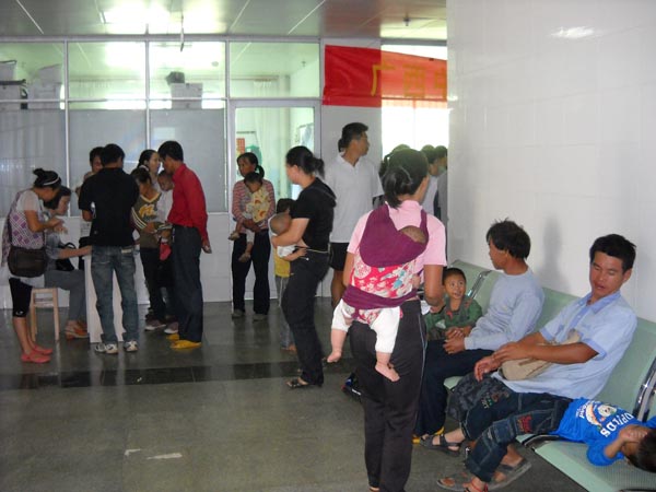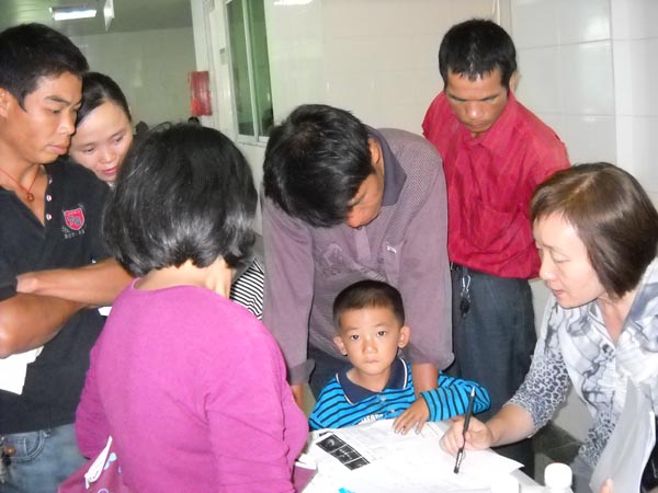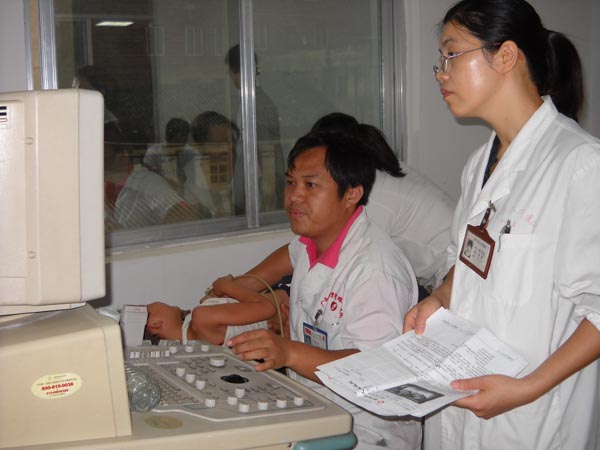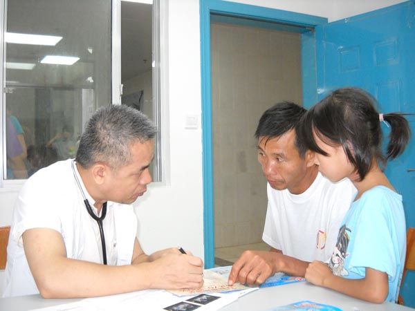 2011年8月22-27日,由我院心胸外科吴文森主任、心血管内科何劲松主任、心血管二病区黄金龙主治医师、超声科唐昂主治医师等组成儿童先心病普查专家队伍在医疗服务部张丽群副主任带队前往贺州市救助点开展普查工作。本次参加普查人数共计200余人,查出先心患儿需手术53人。