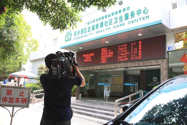 9月18日上午,中央电视台经济频道记者莅临我院南棉社区卫生服务中心采访。卫生厅妇社处副处长于家新、卫生厅新闻办副主任卢贵基、南宁市卫生局副局长谭印光、我院副院长张春等领导及我院信息宣传科科长赵立春、南棉社区卫生服务中心主任廖康兴等科室负责人陪同。