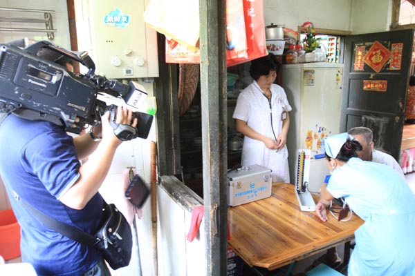 拍摄医务人员上门为社区居民服务