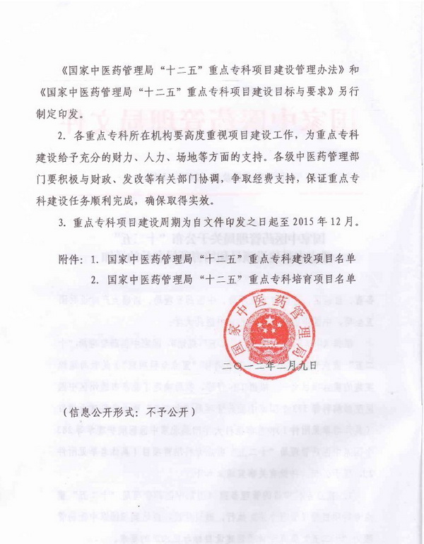 国家中医药管理局“十二五”重点专科建设项目