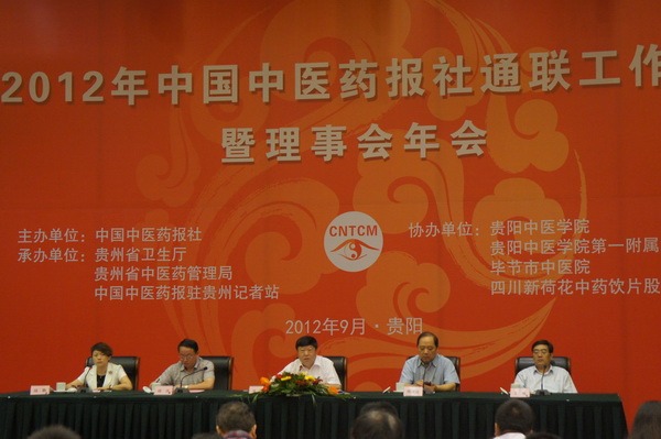 中国中医药报2012年通联工作会暨理事会年会9月6日在贵阳市召开。国家中医药管理局副局长吴刚,贵州省卫生厅党组成员、省中医药管理局局长杨洪出席。中国中医药报社社长兼总编辑陈贵廷作工作报告,副社长陆静主持会议。来自全国各省(区、市)记者站、中医药管理部门负责人,本报理事会单位的代表210余人参加会议。