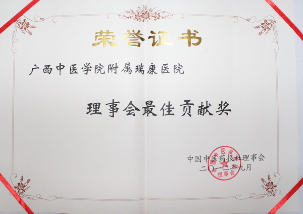 本次会议对2011年度各类先进进行了表彰。其中全国共有广西中医药大学附属瑞康医院等5家单位获得中国中医药报社理事会最佳贡献奖。