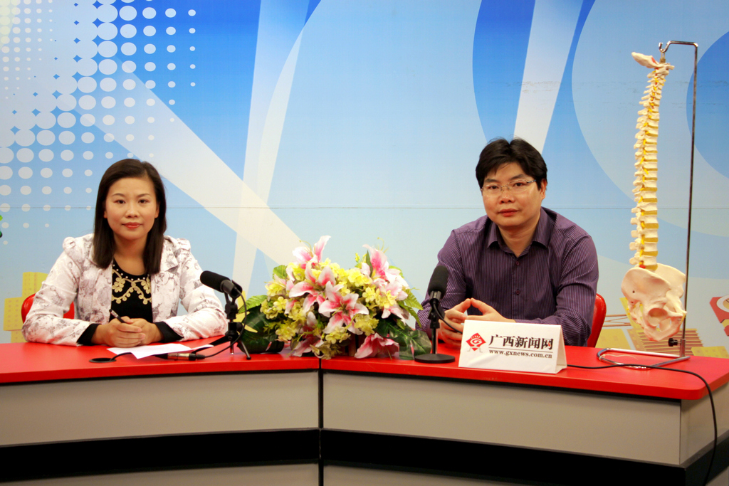 2012年11月1日下午,我院脊柱微创中心主任陈远明博士在广西新闻网演播室录制“关于微创医学你知道多少?”的专题节目,期间在线回答网友的提问,获得广大网友的欢迎。