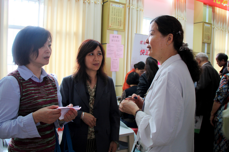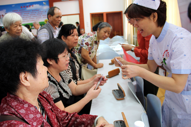 47岁的刘先生在一群老人中显得格外乍眼,一问才知原来他是看到医院的活动通知很感兴趣才来参加的。考虑到自己也到了糖尿病高发的年纪,加上家族有糖尿病史,刘先生认为前来了解一些防治知识很有必要。他在现场测得的血糖值指标不高,在咨询过我院内分泌专家后,他一颗惴惴不安的心终于放了下来。在问及周围同龄人中是否有患糖尿病时,刘先生表示不知情,并说他们这个年龄段的人群对自身疾病比较讳莫如深,一般不愿提及,更不愿去参加一些义诊和健康讲座活动。他认为这样是不对的,现代人生活压力大各种慢性疾病易发,人们应该更积极的去参加这些活动以增强自我保健意识。