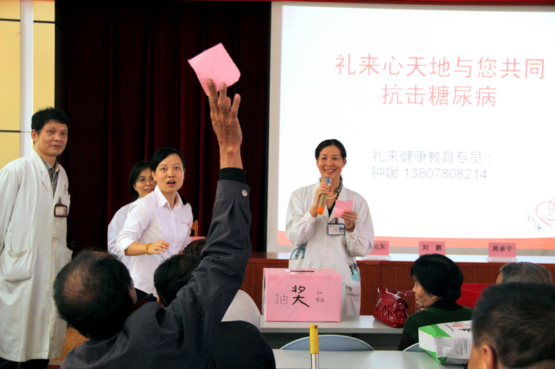 11月14日是联合国糖尿病日,我院内分泌科充分考虑到病友的时间安排问题,特提前在11月10日周六早上举行2012联合国糖尿病日主题活动。我院内分泌科刘鹏主任为到场的百余名糖尿病患者及咨询者做了关于糖尿病防治和糖尿病患者日常保健的健康知识讲座。本次活动内容涵盖血糖血压健康体检、糖尿病防治健康知识讲座、糖友联谊会和专家现场咨询。糖友联谊会还安排了现场小游戏、抽奖等趣味环节。