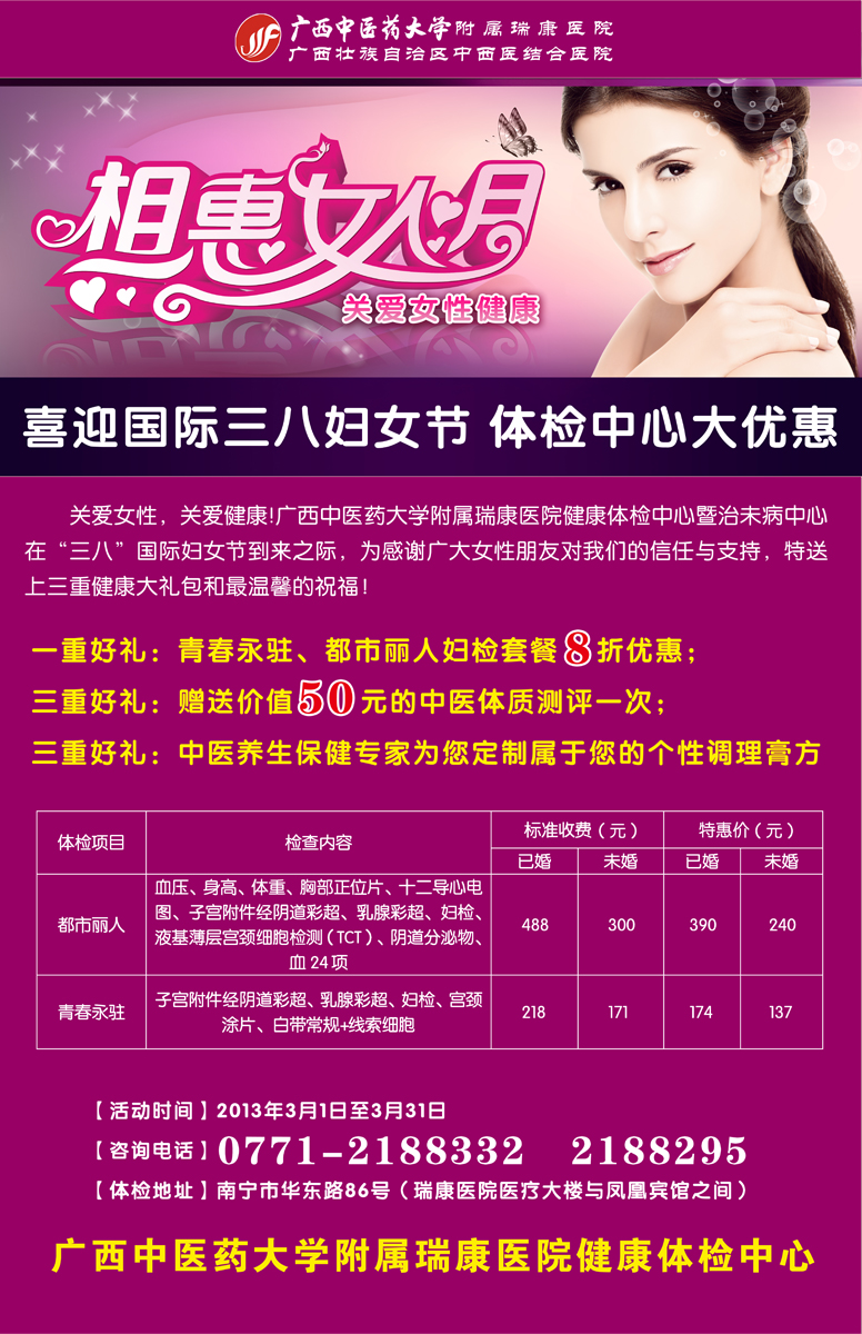 广西中医药大学附属瑞康医院(原中医二附院)始建于1951年,是国家公立三级甲等综合性中西医结合医院、全国卫生系统先进集体、全国百姓放心示范医院、 国家重点中西医结合医院、国家中医药管理局国际交流合作基地...