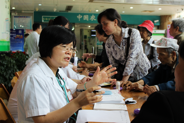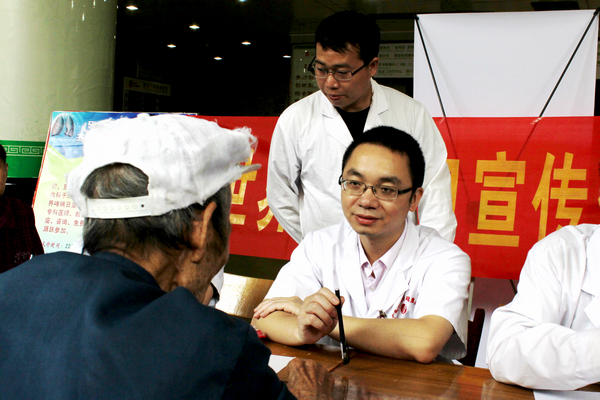 陈斯宁主任医师正在给前来咨询的患者朋友解答疑问
