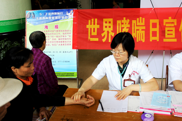 今年5月7日是第15个“世界哮喘日”,我院呼吸内科于当天上午8:30~12:00在门诊一楼大厅举办宣传义诊活动。我院呼吸内科陈斯宁主任及梁炜医生等专家为到场的市民进行支气管哮喘健康知识的详细解答和免费义诊。