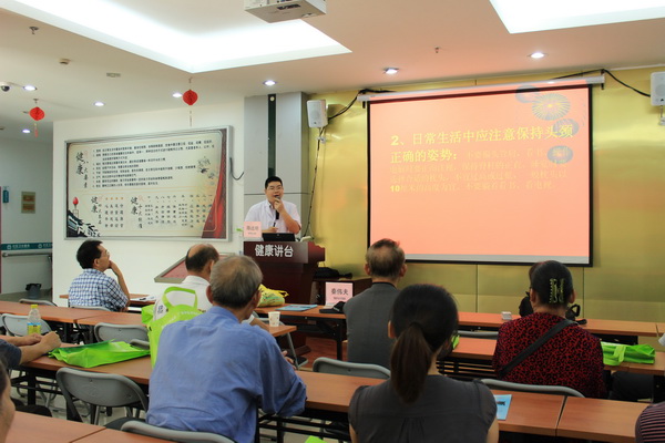 在服务中心二楼,由骨脊柱科一区陈远明主任主讲的《腰腿痛的防治》和胃肠外科秦伟夫博士主讲的《大肠癌的筛查》也顺利进行着,两位专家用幽默的话语,把专业的医学理论转化成浅显易懂的医学常识传达给群众,博得了大家的阵阵掌声。讲座结束后,在场的群众纷纷主动提出,瑞康医院的专家以后要多来开展类似的讲座。