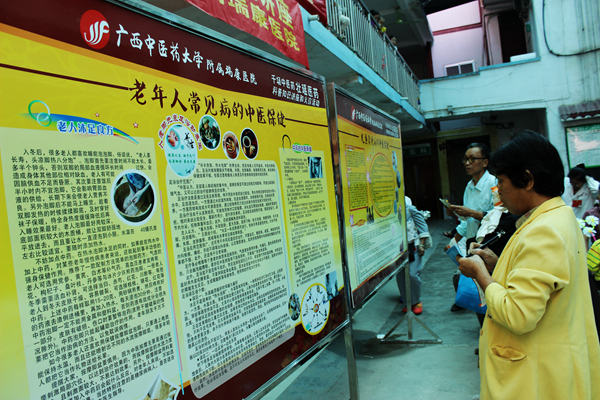 在我院医疗服务部精心准备的中医药壮瑶医药科普知识展板前,也聚集了对这些知识十分感兴趣的群众,有一位老大爷掏出笔记本一直在抄写着展板上的内容,足足在展板前站了半个多小时,最后他还向我院工作人员表示感谢,称赞这样的健康宣传形式实在是太好了,内容充实贴近老年人所需,希望今后能多办常来。