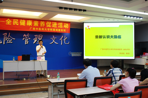 消化内科陈远能主任为大家带来题为《重新认识大肠癌》的健康讲座,从“大肠癌目前在我国的现状”、“大肠癌的主要症状”、“早期发现大肠癌要做哪些检查”等几个方面,向在场的年轻人们普及了注意消化系统健康的理念,给平时有不良饮食生活习惯的人群敲响了警钟。陈远能主任指出,在经济迅速崛起的国家和地区,如亚洲,大肠癌发病率迅速上升。 我国长江中下游东南沿海的上海、浙江、江苏、福建为大肠癌高发区,且发病率呈迅速上升态势。 大肠癌的发病与生活方式、遗传等关系密切,如饮食过细过精,爱吃高脂肪性食物等。陈远能主任提醒,对于大肠癌的高危人群,如40岁以上男性,家族性多发性肠息肉患者,溃疡性结肠炎患者,慢性血吸虫病患者及有大肠癌家族史的人应做到定期检查,警惕大肠癌的信号及早期症状,做到“早期发现、早期诊断、早期治疗”。