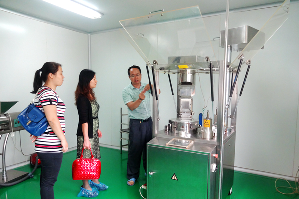 药物研发中心陈壮副主任在给来宾介绍设备功能