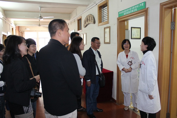 代表团一行首先参观了针灸科,李扬帆主任为来访嘉宾演示了针灸手法,代表团对其精湛的手法赞叹不已。随后代表团参观了我院国医堂,牛豫洁主任热情地为他们介绍了我院的名老中医。