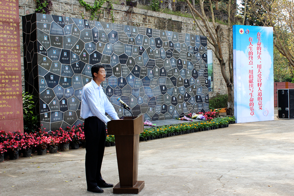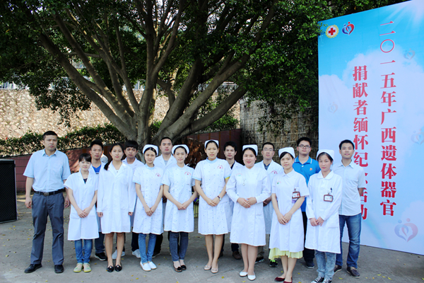 3月31日,清明节前夕,多名医务工作者前往南宁市青龙岗长安墓园,参加广西红十字会与广西卫生计生委联合举办的2015年广西遗体器官捐献者缅怀活动。自治区卫生计生委副主任尤剑鹏、自治区红十字会副会长潘雪红等领导出席此次活动,自治区红十字会专职副会长王宇主持。