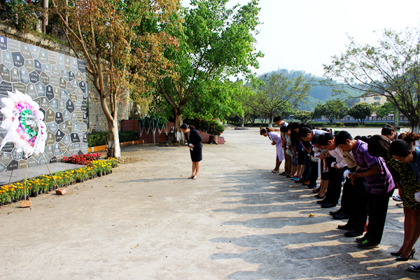 4月15日,我院党委组织党员代表、青年职工代表、离退休老同志代表及学生代表前往南宁市青龙岗长安墓园缅怀广西遗体器官捐献者。我院党委书记唐友明、教务学生党总支书记王瑜、教务学生部主任莫启章、团委书记叶修廷等领导出席了此次缅怀活动。