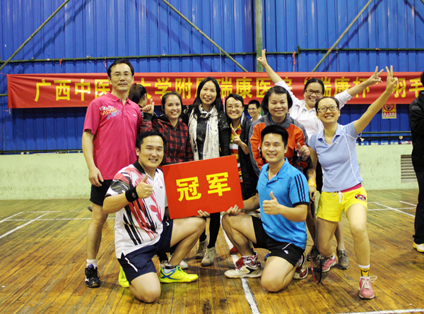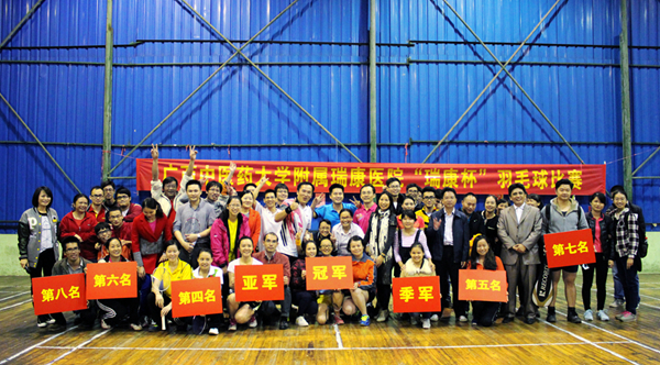 “加油!加油!”11月13号晚上,在市建安公司球馆加油助威的声浪一声高过一声,最终经过几轮厮杀,我院历时五天的“瑞康杯”羽毛球比赛圆满落下帷幕。党政、视光、南城联队三支队伍凭借强劲实力和灵活战术卫冕冠军,病理联队当仁不让荣登亚军之位,学生队异军突起勇摘季军。骨伤科学教研室队、空港院区队、护理学教研室队、医学影像学教研室队、针灸科学教研室队分别位列第四名到第八名。我院党委副书记、纪委书记陈日兰及相关科室领导到场为获奖团队颁奖。