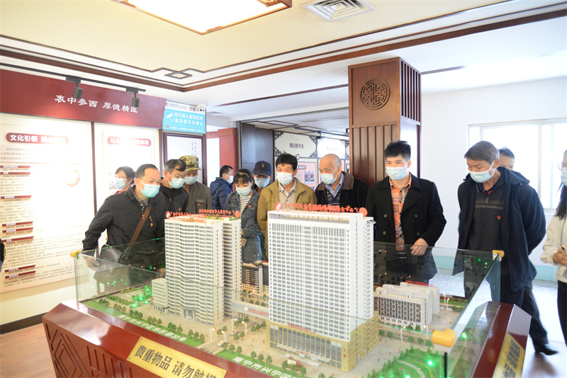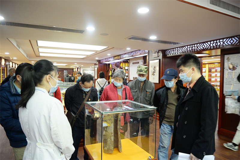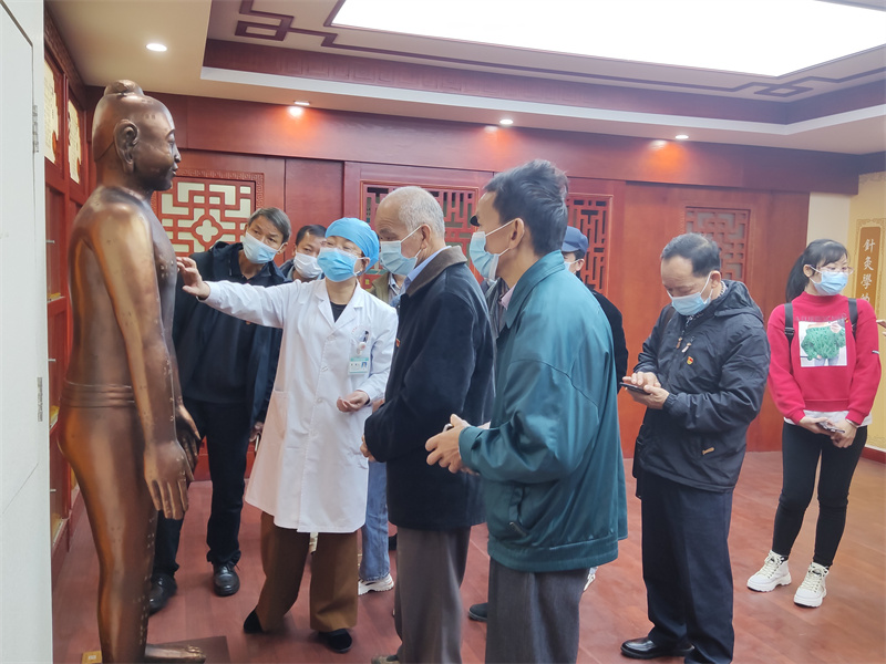 当天,在相关科室负责人的陪同下,李金荣一行先后参观了国医堂、院史馆、治未病中心、正骨推拿理疗馆、针灸馆和中医药博物馆等。“这就是我们医院的院史馆!”“这里是治未病中心,这是艾草的味道……”作为医院派出的驻村第一书记,李金荣如数家珍般地向大家介绍着医院发展历程、中医药特色、先进医学技术等。每到一处,党员和村干们都驻足观看,体验中医药文化,感受中医药文化的特殊魅力。