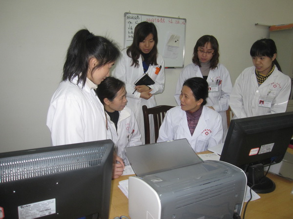 李莉教授在武鸣县中医院与妇科莫主任、年轻医生讨论疑难病例