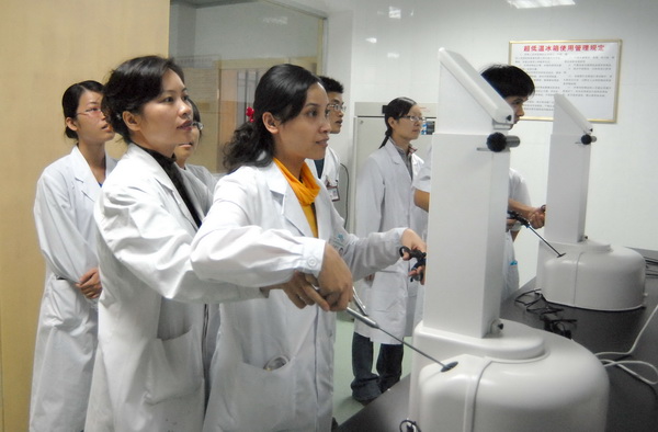 我院国医大师不孕不育临床研究中心积极推广国医大师班秀文教授学术经验,在林忠主任的领导下,由李莉教授、罗志娟教授牵头,采用举办学习班、专家查房、专家门诊现场指导等方式,向宜州市中医院、蒙山县中医院、武鸣县中医院、扶绥县中医院、防城港市防城区中医院等5家帮扶中医院传授治疗经验、成果及先进的宫腹腔镜技术,积极推进基层中医医院中医妇科建设。