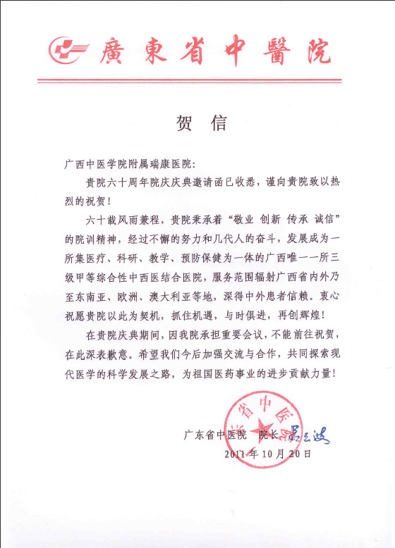 广西中医药大学附属瑞康医院(原中医二附院)始建于1951年,是国家公立三级甲等综合性中西医结合医院、全国卫生系统先进集体、全国百姓放心示范医院、 国家重点中西医结合医院、国家中医药管理局国际交流合作基地...