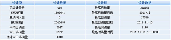 根据部署的网站流量系统统计,从2010年12月下旬开始上线,截止