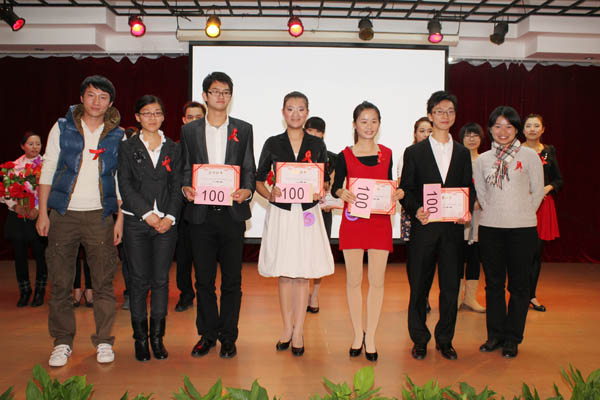 选手们的演讲稿内容充实、情感真实,加上他们发自肺腑的表达,感动了台下一个个细心聆听的观众。评委老师们根据选手们的形态礼仪、语言表达、讲稿内容、肢体动作等方面一一为选手评分。在统计选手最后得分的空暇,现场还进行了互动环节,邀请在场的大学生上台进行艾滋病基本知识的抢答。