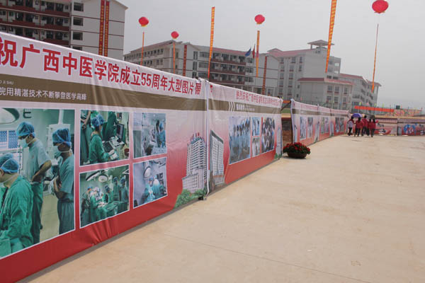 除了校庆庆典现场活动的参与,我院还精心制作了长达840米的宣传展板,展板内容涵盖了广西中医学院的发展概况以及瑞康医院近年来取得的成绩,彰显了整个中医学院系统的实力和未来发展的无限机遇,为整个校庆庆典增添了光彩。