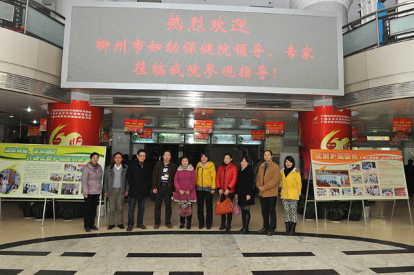 2012年2月20日,柳州市妇幼保健院一行6人莅临我院参观指导。我院院长助理、医务科科长韦思尊,党政办副主任黄建民,心胸外科主任吴文森、医保科副科长巫文岗、财务科副科长彭爱莲等科室负责人陪同。