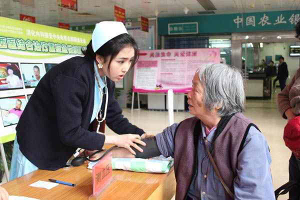 “阿姨,您这血压有点高,平时要注意锻炼啊!”,“阿叔,您的血糖差一点点就超过标准了,以后要多控制饮食啊!”,“大姐,您的病情可不能忽视啊,最好是定期来医院检查。”……3月5日上午,由我院内分泌科、骨科、呼吸内科、神经内科等科室专家组成的“学雷锋,树新风”义诊团队在医院门诊大厅为患者免费看病,医院的为民志愿服务者队员搀扶行动不便的患者到门诊、病房,得到了群众的一致称赞。