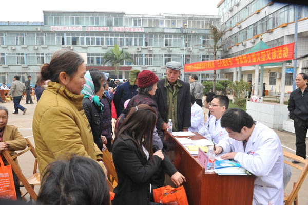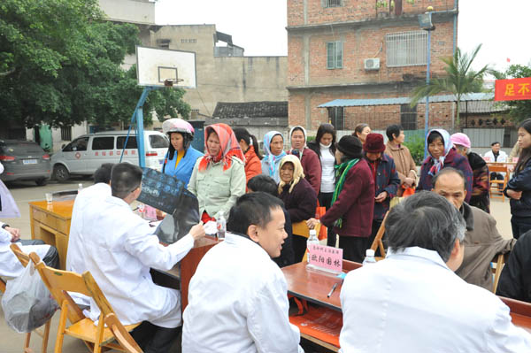 义诊现场,许多从四里八乡闻讯赶来的群众早早的等在义诊现场,专家们刚一坐下,群众就按自己的需要选择专家,专家们认真地听他们的讲述病情,并细心地给他们量血压,把脉,开处方。医院为患者提供免费的B超和心电图检查,近百人排队等候检查,工作人员为病友们发放了医疗卫生知识小册子,广泛宣传各种疾病的防治知识,受到了群众的欢迎。卫生部肝胆肠外科研究中心广西基地、骨科、肿瘤科、针灸科的博士、专家、教授们深入病房,开展教学查房及进行相关的技术交流活动。