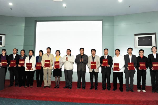 学校领导和“新闻宣传先进单位”代表合影