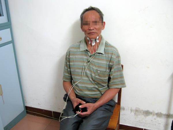 覃某某因吞咽困难、饮水呛咳、不能行走3个月来住院治疗。患者家属代诉三月前在钓鱼时无明显诱因下站立起来突然出现头晕,伴视物旋转、胸闷、恶心、声音沙哑、吞咽困难、饮水呛咳。遂在家人陪同下送至当地医院诊治,诊断为“脑干梗塞急性期”,经治疗后仍遗留吞咽困难,声音沙哑、喉间痰鸣,并伴有左侧肢体麻木,出现明显共济失调,不能站立行走。为进一步治疗入住瑞康医院康复中心系统康复治疗。结合患者存在吞咽、运动、语言三个方面的功能障碍,康复中心的医师、康复师通过系统评定给患者制定全面的康复治疗。吞咽方面评定发现患者存在环咽肌开放不全、咽缩肌力量减弱且收缩不对称、喉上抬不充分、声带闭合不充分、软腭上抬不充分且欠协调、咽反射、呕吐反射减弱。运动方面评定发现患者存在较严重的共济失调。