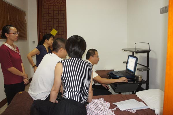 在韦贵康教授的义诊台前,早早就聚集了众多的求诊者,韦老一到现场,立刻就忙开了,为求诊的患者进行手法治疗;消化科专家林寿宁教授在给患者看病开处方的同时,给患者提供了秋季养生的建议,还根据患者的需要,有针对的选择膏方,深受患者欢迎;中心配置的高端设备——AMP无创血液检查系统和中医经络检查系统在义诊现场也免费开放,众多市民排队体验,弘中会所的工作人员耐心的进行测试并进行分析,并告诉测试市民经络的健康情况、需要注意的事项。