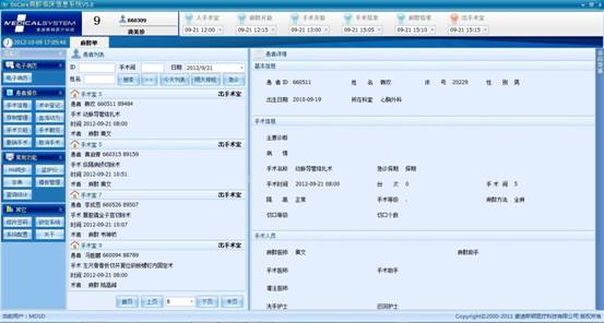 手术、麻醉是现代大型医院中非常重要的一个组成部分,外科医生为病人进行手术的好与坏直接会危及到病人的生命,所以病人在手术麻醉过程中每一个环节都是非常重要的。手术麻醉管理信息能为手术麻醉科室提供一个先进的管理工具,实现手术麻醉科室的科学高效管理。