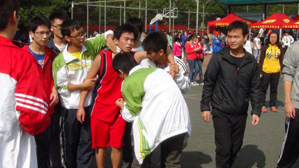 在为期两天的运动会过程中,瑞康临床医学院运动员志愿者服务队的全体志愿者认真负责,顺利完成各项任务。赛前志愿者服务队针对每一位运动员都做了详细的分工;比赛时志愿者在大本营提供了充足的后勤保障及物品保管服务,为运动员免费提供水、药品、生理盐水、葡萄糖水等物品,保证运动员正常参加比赛;赛场上一对一服务的志愿者认真服务好自己对应的运动员,从赛前的检录到比赛中的加油到赛后的放松,特别在长跑比赛中,采取了多对一的服务方式,几位志愿者同时负责一名长跑运动员,比赛结束后带到学校的手法协会放松身体,做到全程服务!我们的每一位志愿者很好的展现了友爱、互助、奉献的精神,让运动员们特别是2012级第一次参加大学校运会的新生运动员感到特别的温暖。