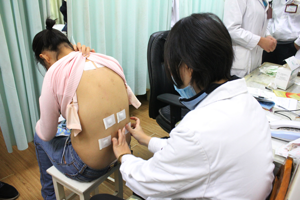 “我跟女儿都要贴。”覃女士说,05年患上慢性支气管炎,每到天气转冷的时候就发烧,咳嗽,很折磨人。听介绍说三九天灸能治疗慢性病,试着贴了一次,果然有效,后来三年每年的三九天和三伏天都来贴敷,病情控制得很好。现在女儿抵抗力弱,呼吸道经常得病,咨询医生后就带她过来贴了。