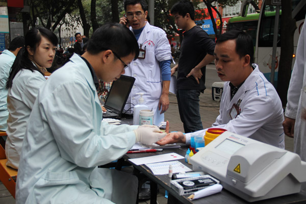 渐入深冬,年关将至,南宁市用血持续紧缺。近日邕城气温陡然回暖,我院职工的献血热情也伴着气温浓厚起来。为了缓解南宁医疗临床用血,弘扬医务人员医德医风,2013年2月1日,我院100多名医务工作人员挺身而出,积极参加无偿献血活动,总献血量达25000余毫升。