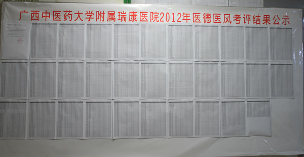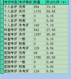 根据卫生部、国家中医药管理局印发的《关于建立医务人员医德考评制度的指导意见(试行)》及我院医德考评管理制度,2013年1月5日我院通过医德考评计算机管理系统启动对全院医务人员2012年度医德考评工作,全院79个科室及1968名职工参加了此次考评。医德考评工作在全院各科室的大力支持下,经过医院医德考评领导小组认真考核,2月20日顺利完成全部考评,考评结果公示结束。2012年度全院医德考评优秀率为2.44%,良好为90.56%,一般为0.46%,较差为0%,为我院各类评优评先提供了重要依据。